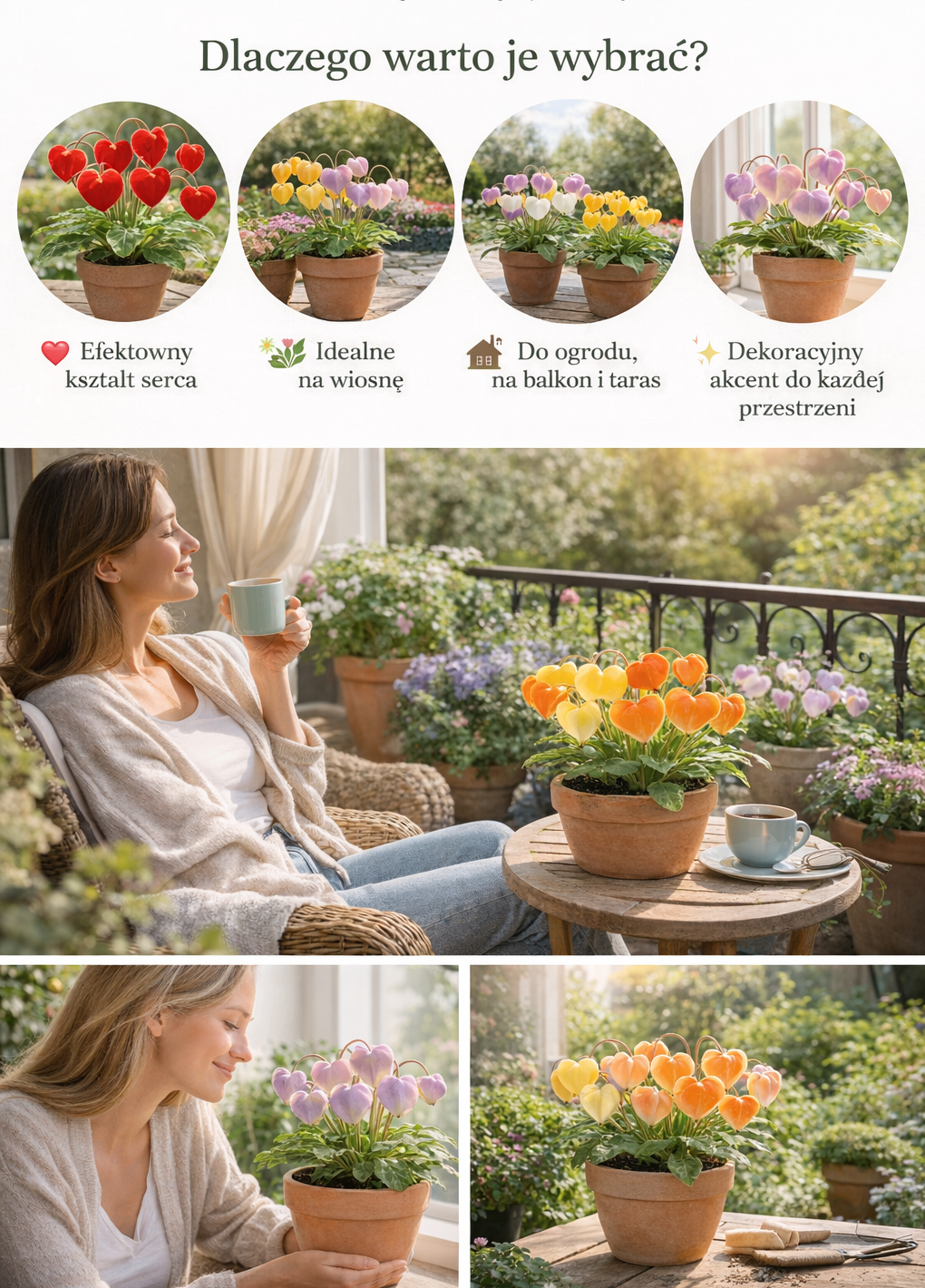 ☕Wyobraź sobie poranek z filiżanką kawy na balkonie, obok doniczki pełnej uroczych kwiatów w kształcie serca.